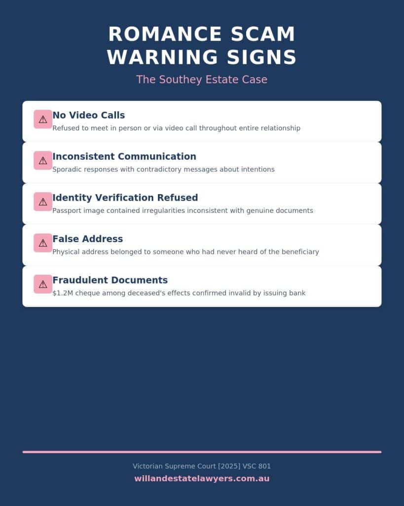 The December 2025 decision in Re the will of William Ian Southey [2025] VSC 801 is now a cautionary tale for executors, estate lawyers, and anyone vulnerable to romance fraud.